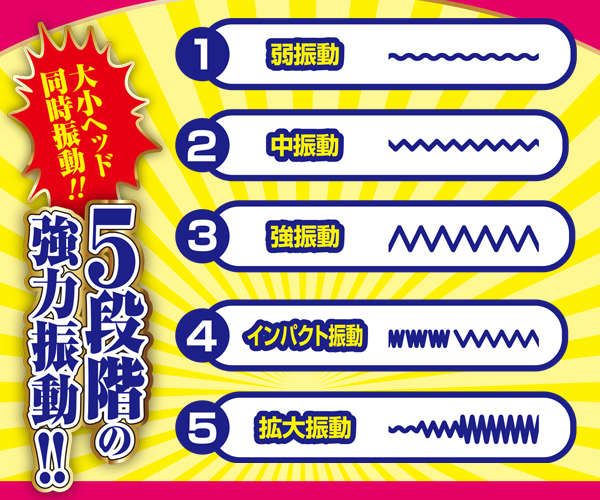 ブラシ付の子機がクリを捉えながら大きな頭でGスポを的確に刺激!ダブルの快感で潮吹きまでまっしぐら♪5段階の強弱振動を搭載し、表面はしっとり柔らかな滑らかシリコンでコーティング。