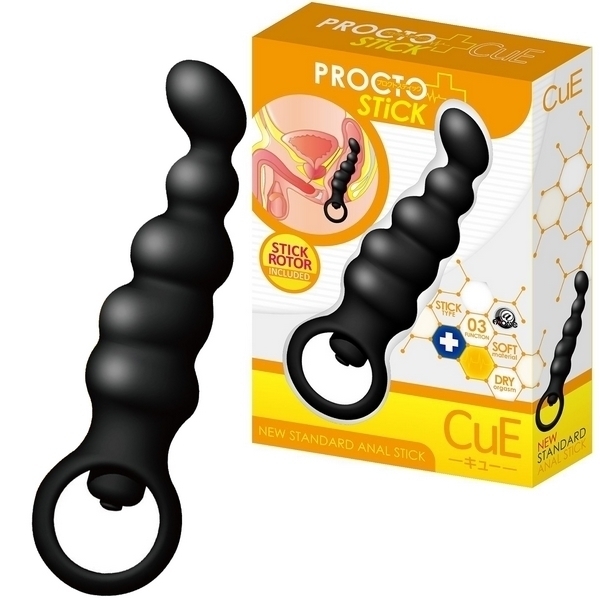 波打つ連続コブでハードに圧迫!挿入しやすいスティック型アナルバイブ「プロクトスティック キュー」。